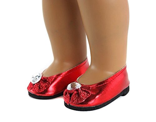 Metallic ballet flats with glitter bow and diamond gem detail.