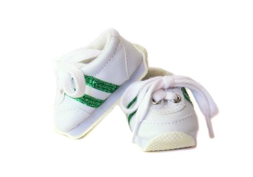 Realistic sport tekkies for athletics, tennis or just casual wear! The white tekkies are finished with glitter stripes on the sides and closes with white laces.