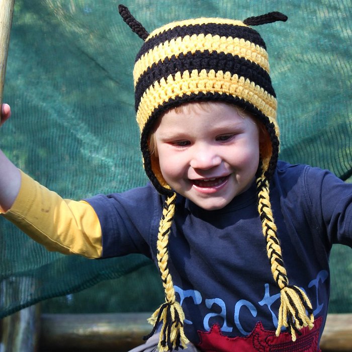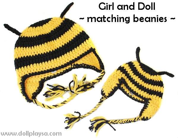 Be a 'Buzzing' pair with this matching girl and doll set! A Black and Yellow Beanie that is super fun!