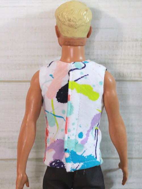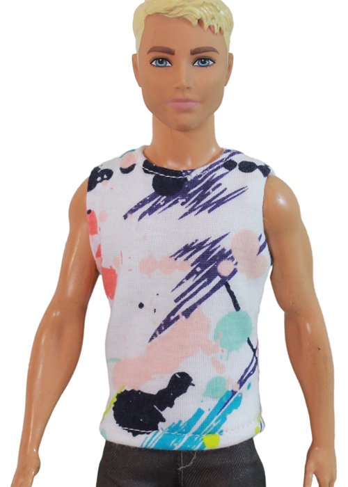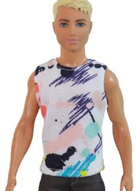 Fully lined sleeveless t-shirt for for 12' fashion dolls such as KEN.Closes with no-snag velcro in the back.Fits:- 12' Male Fashion doll - Original Modern KenMade in South Africa