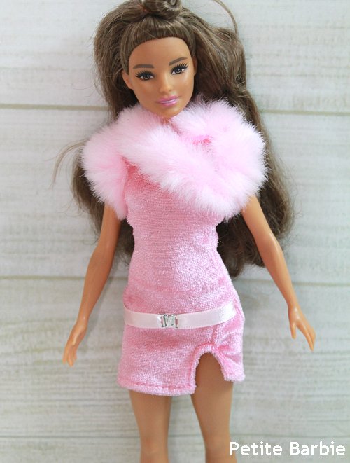 Pink velvet dress with faux fur.