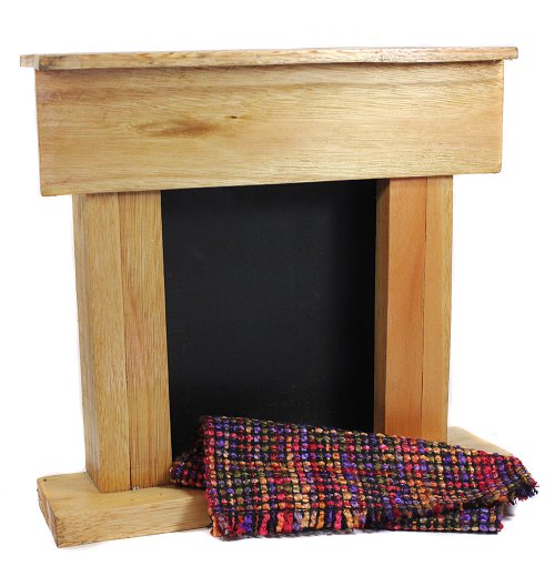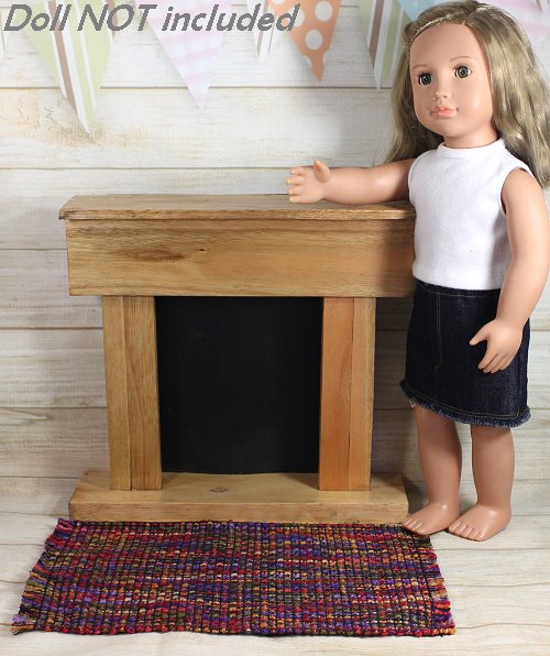 Wood fireplace with rustic flair for your doll's log cabin. Decorate the mantle that is nice and broad for any time of the year. You can craft your own fire to put inside.