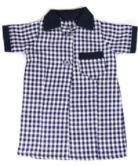 School dress for the first day of school. Made with a lovely quality check fabric. Closes with two buttons in the front.
