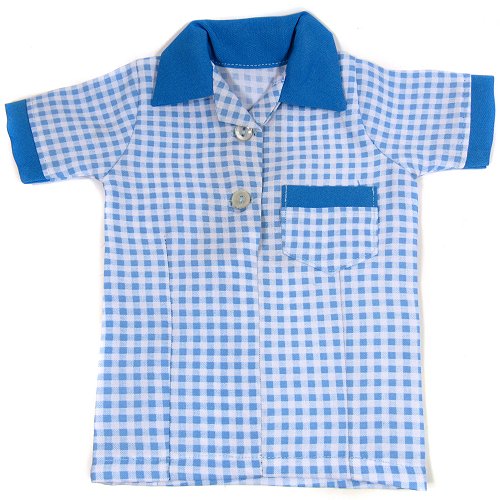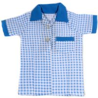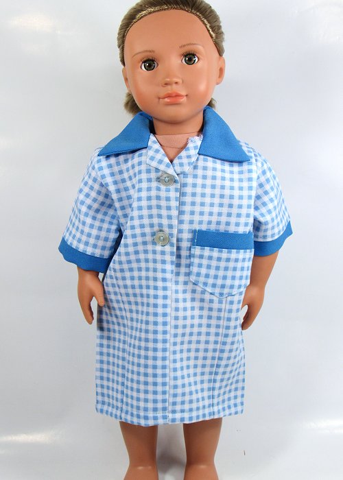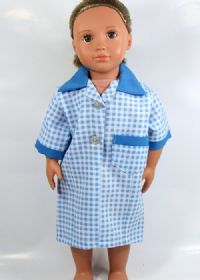 School dress for the first day of school. Made with a lovely check fabric. Closes with two buttons in the front.