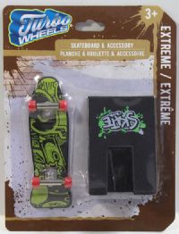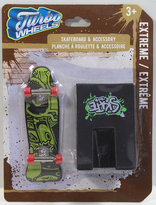 Get ready for extreme skateboarding action with the Turbo Wheels Skate Finger Skateboard and Accessory. Perfect for skate park enthusiasts or collectors.