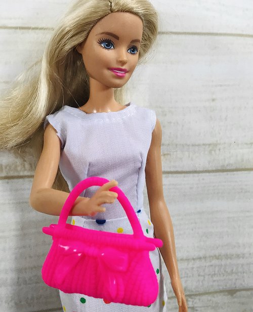 Plastic handbag made for fashion dolls such as Barbie.