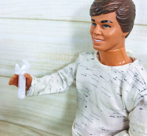 A tiny white wrench perfect for Ken or Barbie to do work around the house with.