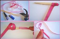 2. Cut the stick with the scissor. Glue the end of the ribbon onto the stick and start rolling it around the stick. Burn the ends of the ribbon to prevent fraying. (Please ask an adult for help)