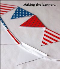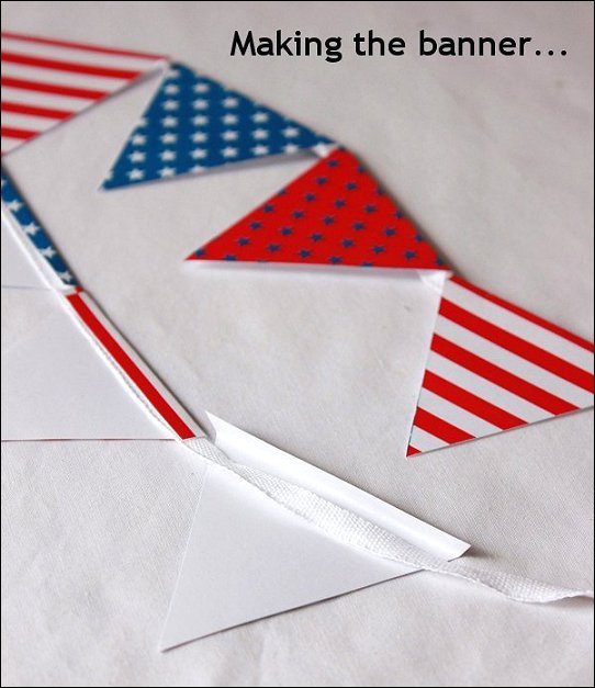 3. Put glue on the top of the triangle and fold over a long piece of ribbon, tape, string or raffia.