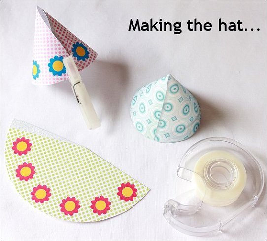 2. You can use glue and a peg to keep the hat in place OR stick the hat together with sticky cellotape OR a stapler.