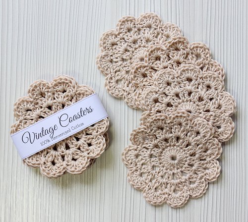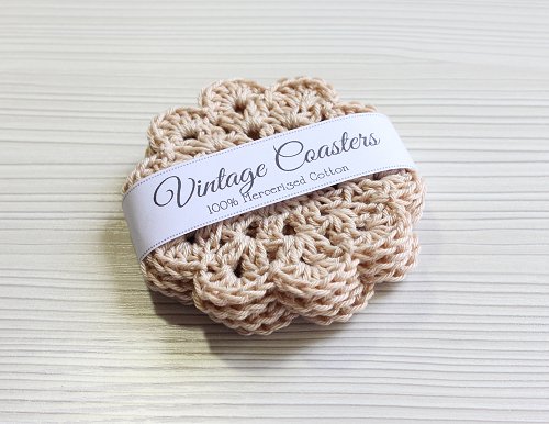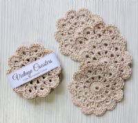 Crochet vintage style coasters. Made from 100% cotton which is absorbable, easy to wash and iron.