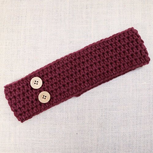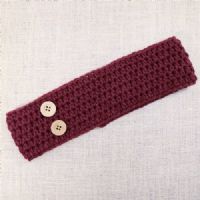 Cozy hand crochet ear warmer headband in dark wine red with two wooden buttons. ** Tween to Adult size - Head Measurement = 51 to 60cm ** 7cm wide The buttons are removable and can easily be attached or moved around without sewing skills needed.