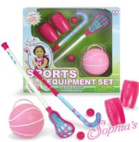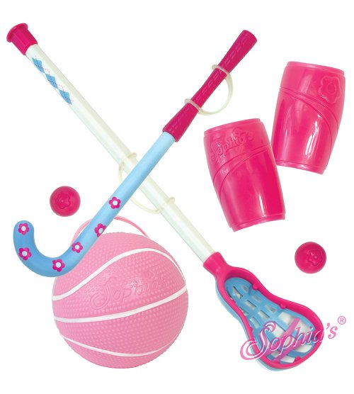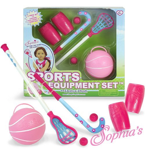 Setting the stage for play!6 Piece Set Includes:- Lacrosse Stick and Ball- Field Hockey Stick and Ball- Basketball (with handle for doll to hold ball!)- Set of Shin Guards Brand: Sophia's{ Dolls, clothes an shoes NOT included }