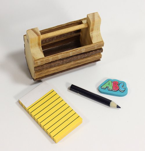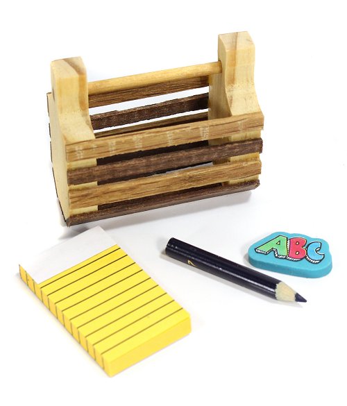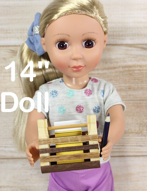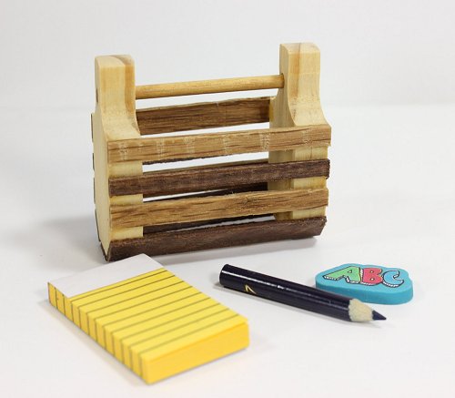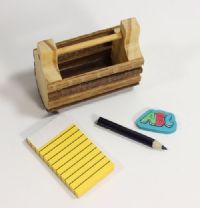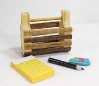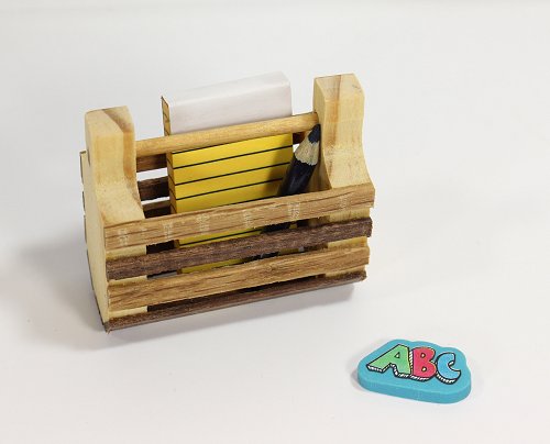 Finely hand crafted wood caddy for your doll's art accessories. Included are a few art supplies!