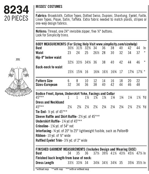 Simplicity 8234 - Women Size 6 -14 - Alice in Wonderland - Sewing Pattern