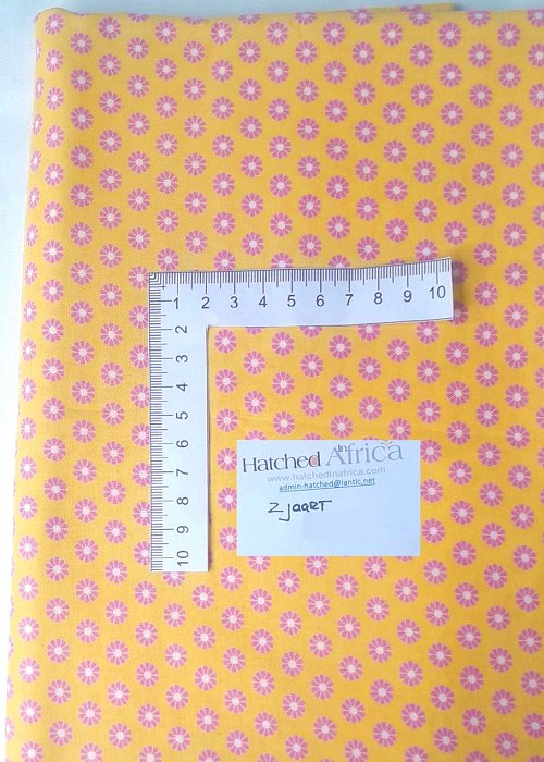 Pretty little pink daisy flowers on a yellow background.