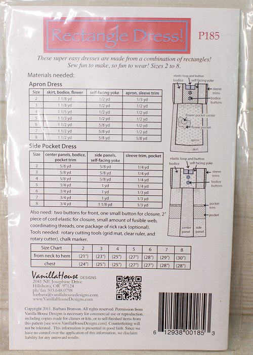 Vanilla House Designs - Rectangle Girls Dress - Size 2 - 8 - Sewing Pattern