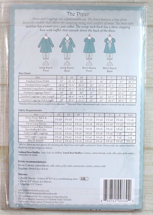 Violette Field Threads - Girl Size The Piper Dress and Ruffled Leggings - Sewing Pattern