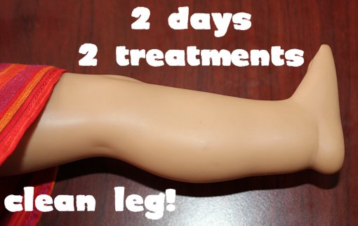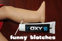 WARNING: Do not use the Benzoyl Peroxide on painted parts of your doll like the cheeks on her on her face. It can lighten or remove the paint! (This includes freckles, eyebrows and mouth)