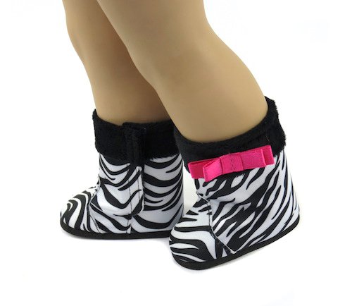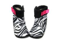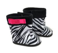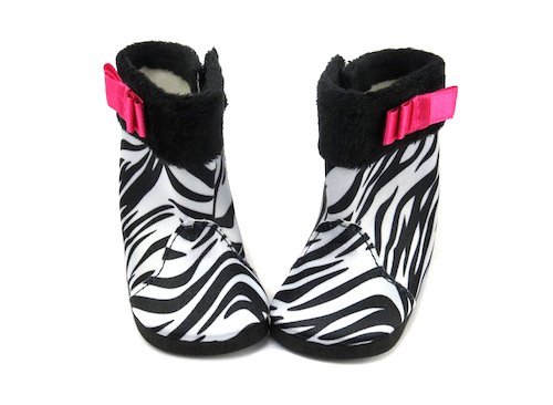 Cute zebra print boots with pink bow on the side. The boots close with Velcro on the inside.
