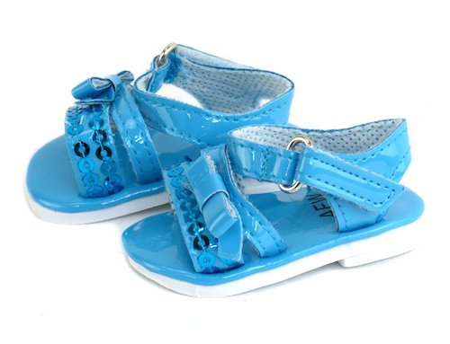 Sweet sandals with sequins on the strap that goes over the doll's foot.