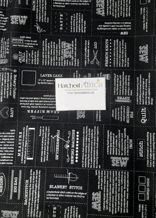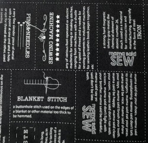 Fun fabric for every seamstress! This fabric has sayings and sewing definitions printed on. All in neat label style pattern.