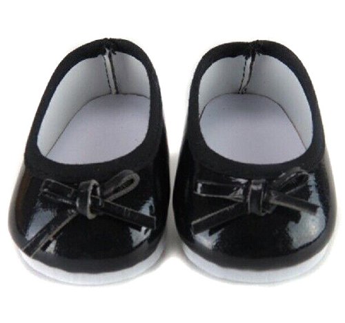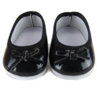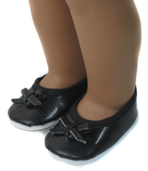 Black ballet flats with leather look bow.