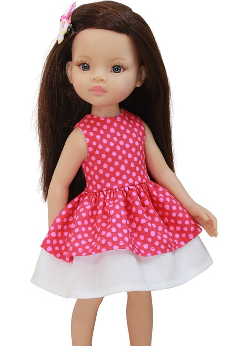 Pretty party dress with a ruffle skirt for smaller dolls.