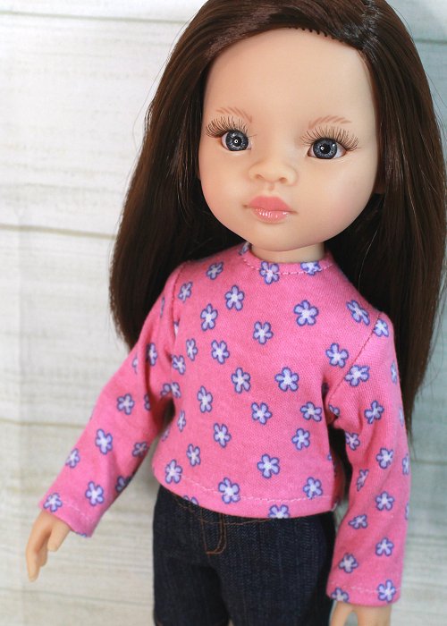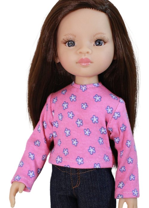 Long sleeve t-shirt in pink with small flowers. Closes with no-snag velcro in the back.