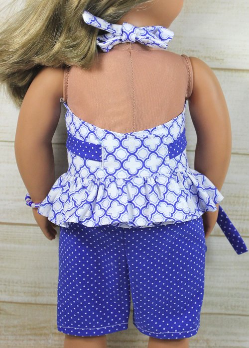 - Wrap top with ties around the waist and at the back of the neck.