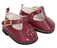 Dark red, T-strap Mary Janes with a flower cut out on the toe. These are perfect to wear with her school uniform or even for casual days.Fits 18 inch Dolls such as Our Generation, American Girl and more.Also fits First Love Dolls.