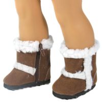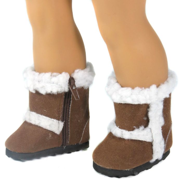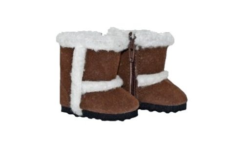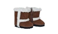 Sherpa style boots with suede look and fur trim. They close with zippers on the inside.