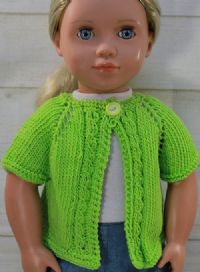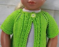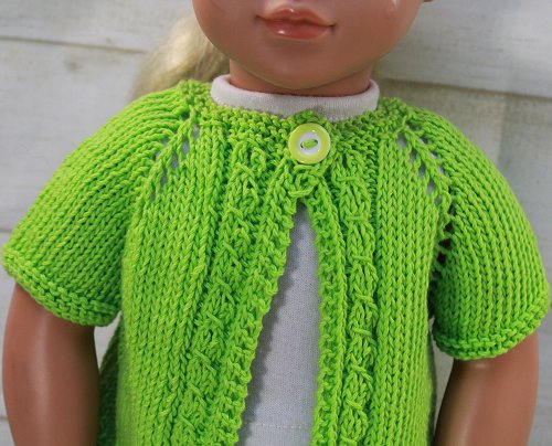 Short sleeve cardigan knitted from soft wool. Closes with a sweet button in the front. Overlays nicely for mix and match fashions.