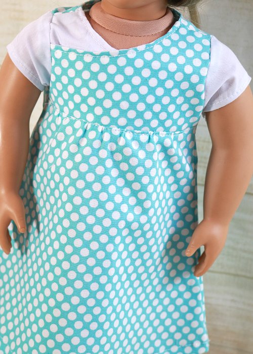 100% Cotton Dress with a wrap top bodice and sleeves.Closes with Velcro in the back.Fits 18 inch dolls such as Our Generation, American Girl and more.Made in South Africa