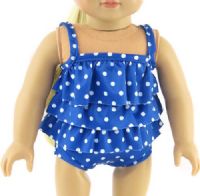 Two piece swimsuit with a ruffle top and bikini bottom. Top closes with Velcro at the back.