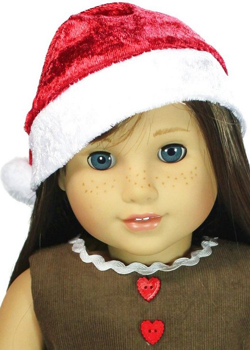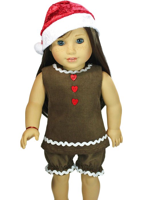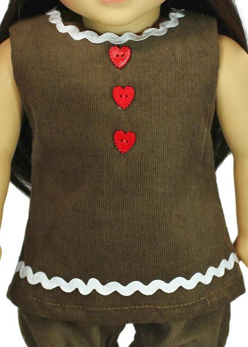 Cute gingerbread outfit made from a soft corduroy fabric and white rickrack trim for 'icing'.