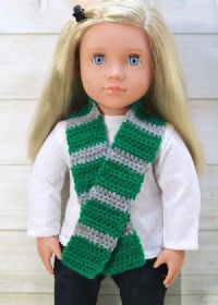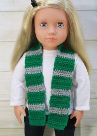 Maroon and yellow crochet scarf. Nice and long to keep your doll warm!