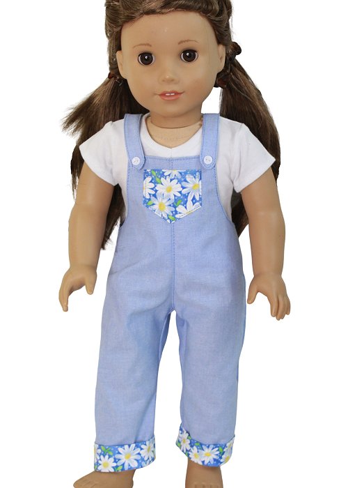 #8808 Overalls and Tee - Light Blue and Daisies