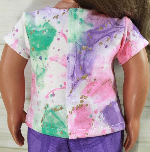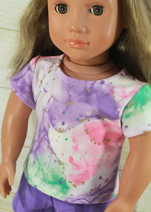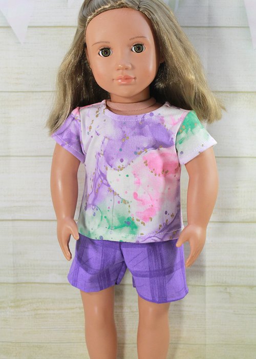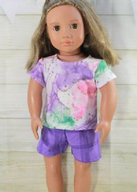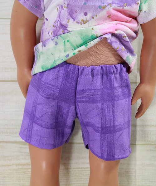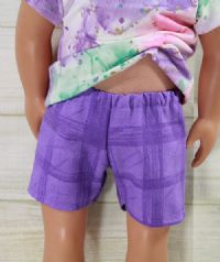 * Shorts - Purple cotton with elastic waist for easy dressing.