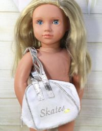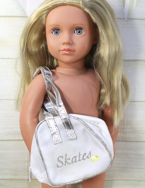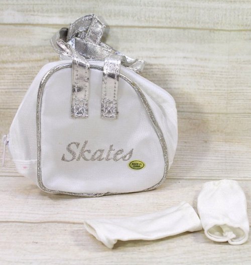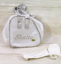 White and silver bag for 18 inch doll size ice-skates.